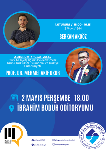 May 3, 1944 and the History of the State-Building of Turkish Nationalism 19 September 2025 / Comments Submitted by admin on 19 September 2025 Etkinlik Tarihi 2 May 2024 - 19:00 Event Period 2023-2024 / Spring Semester