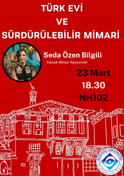 The Turkish House and Sustainable Architecture 19 September 2025 / Comments Submitted by admin on 19 September 2025 Etkinlik Tarihi 23 Mar 2023 - 20:30 Event Period 2022-2023 / Spring Semester